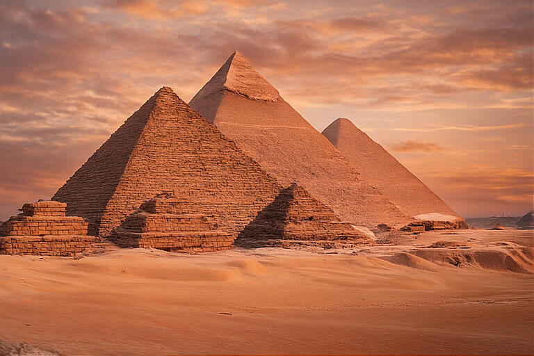 Piramidi, Nilo, deserto bianco e nero, mare, templi